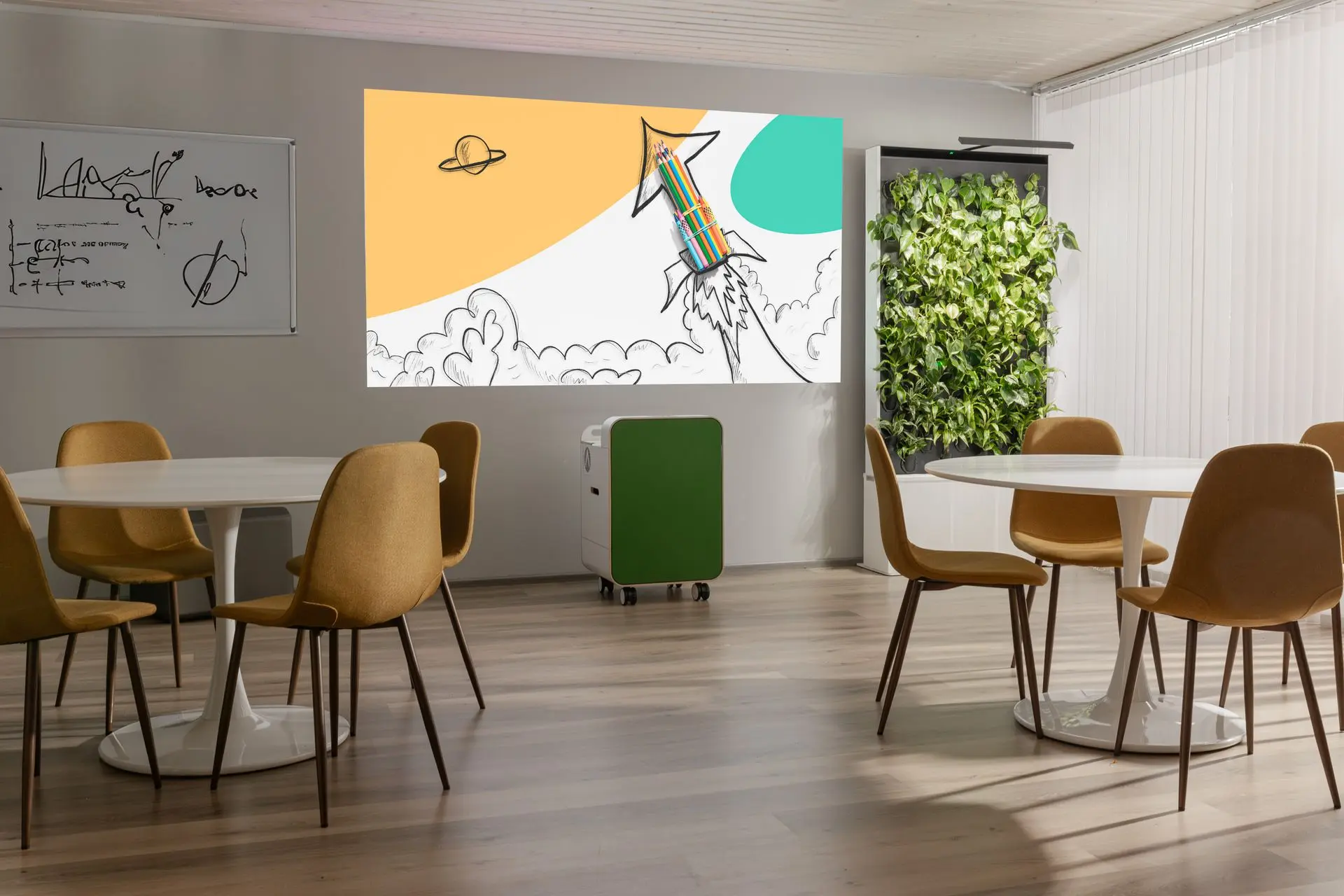 Für Bildungseinrichtungen und Unternehmen mit wechselnden Raumkonzepten: mobiler All-in-One-Projektor für Unterricht, Workshops und Schulungen.